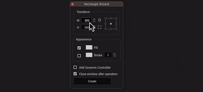 - Add Dynamic Controller: enables the addition of dynamic controls to the rectangle shape