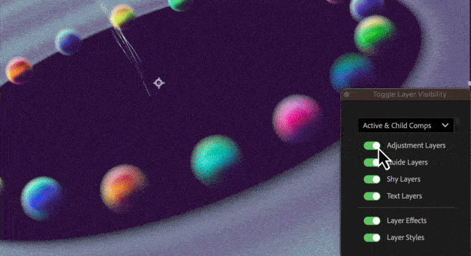 - Adjustment Layers: Toggles the visibility of all adjustment layers